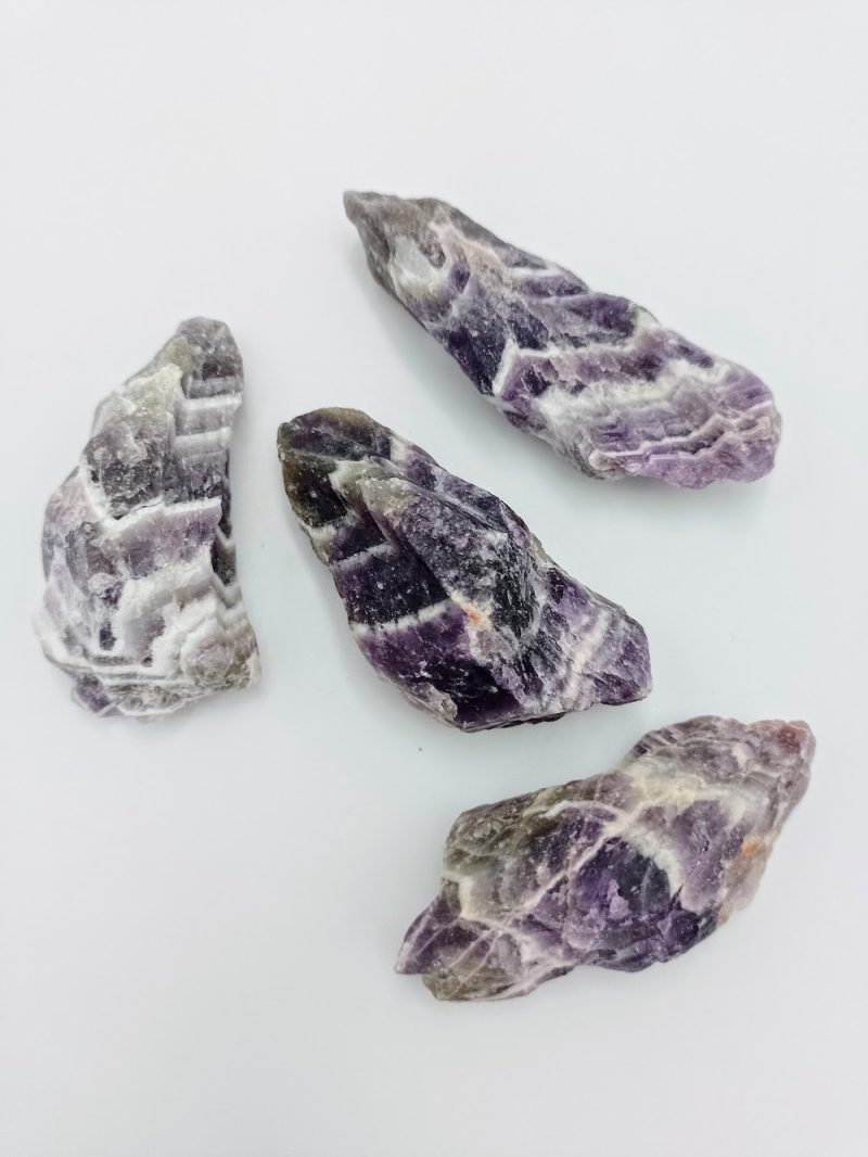 Pochodzący z afryki ametyst chevron, z wyjątkowymi wzorami w różnych odcieniach fioletu.